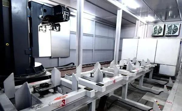 上午10時許,一輛長約20米集裝箱電動集卡緩緩駛?cè)霌Q電工位停穩(wěn),系統(tǒng)自動識別后發(fā)出換電指令,換電站的機器人機械臂從“充電房”軌道上緩緩滑出,“伸”向電動集卡車,用長機械手臂,抓起重約2噸的電池箱,緩緩?fù)嘶氐健俺潆姺俊?,放進充電槽里,然后機械臂抓起一個已經(jīng)充滿的電池箱,再次從“充電房”出來,放到集卡車的電池艙內(nèi),整個過程大約4分鐘。而在一旁監(jiān)控室的墻上,幾塊大屏幕正實時監(jiān)控管理充換電站的運營情況和車輛、電池的運行狀態(tài)。